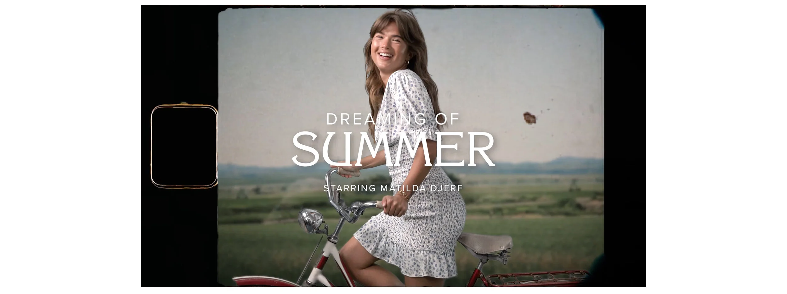 Our improvised Plan B, starring Matilda Djerf, turned out even better than the original: we used green screens, printed backdrops of summer scenes, and a TikTok and vintage film-inspired style to capture the summer vibe. We were the first ones to play with the green screen and printed scenarios to overcome pandemic restrictions.